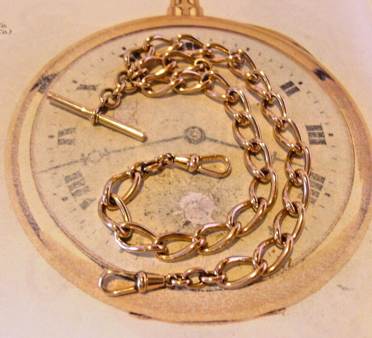 Victorian 1890s Pocket Watch Chain Antique 12ct Rose Rolled Gold Albert With T Bar