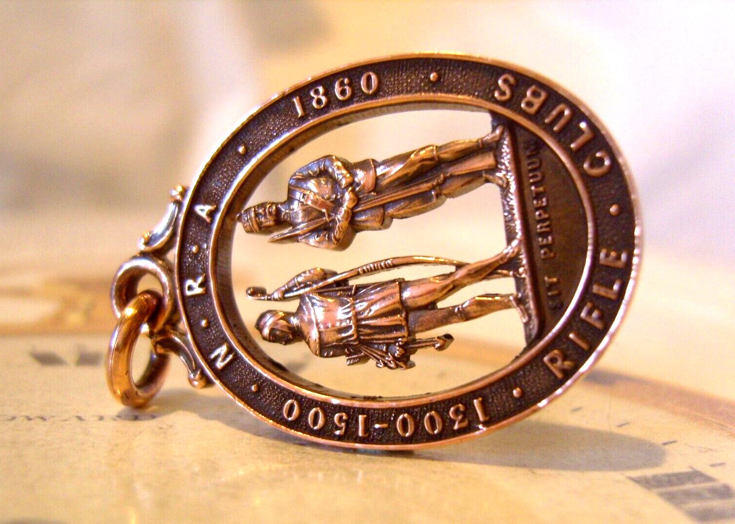 Victorian 1890s Pocket Watch Chain Antique NRA Large Rose Copper Soldiers Fob