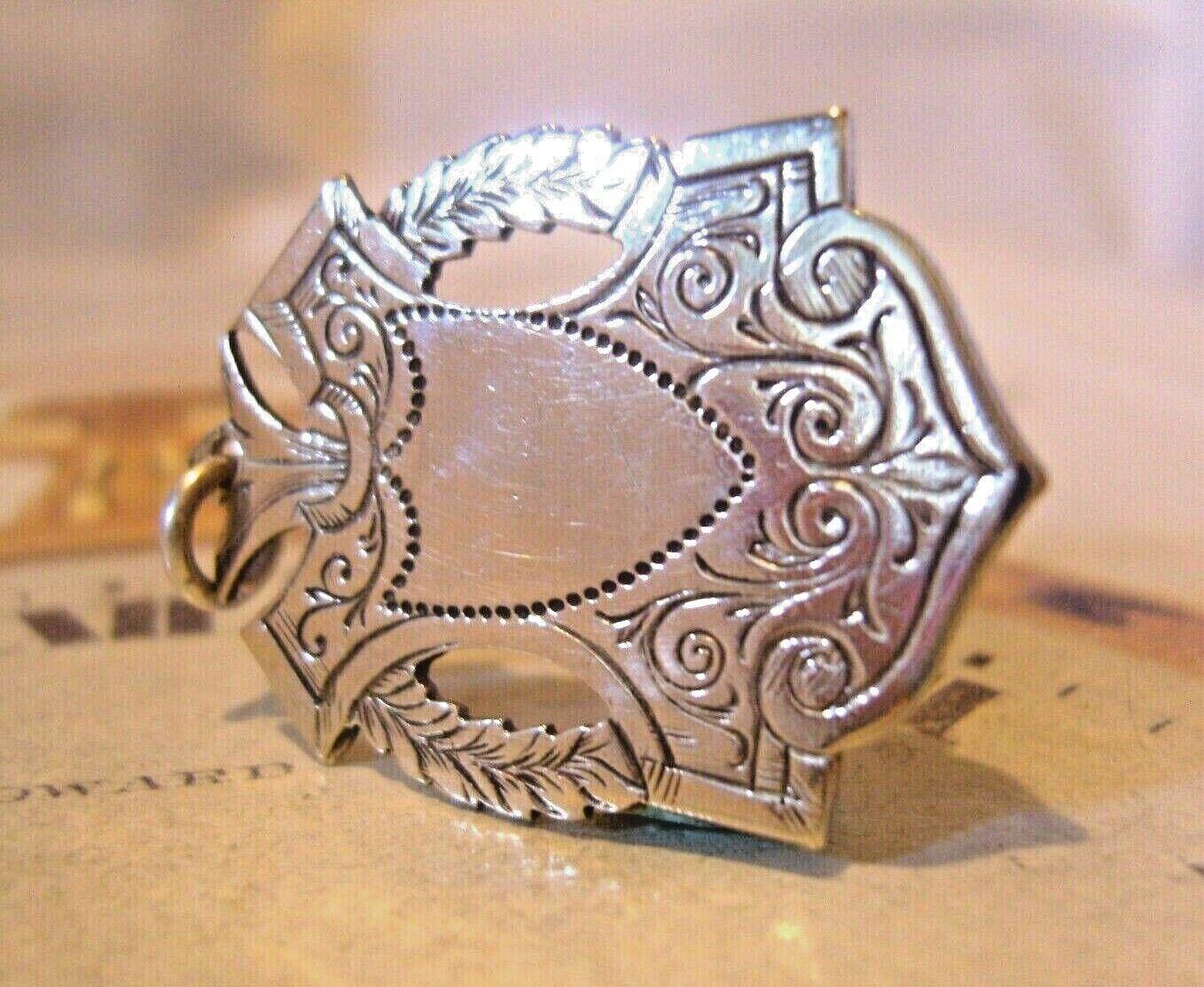 Victorian 1890s Pocket Watch Chain Chunky Shield Fob Antique Silver Nickel Fob