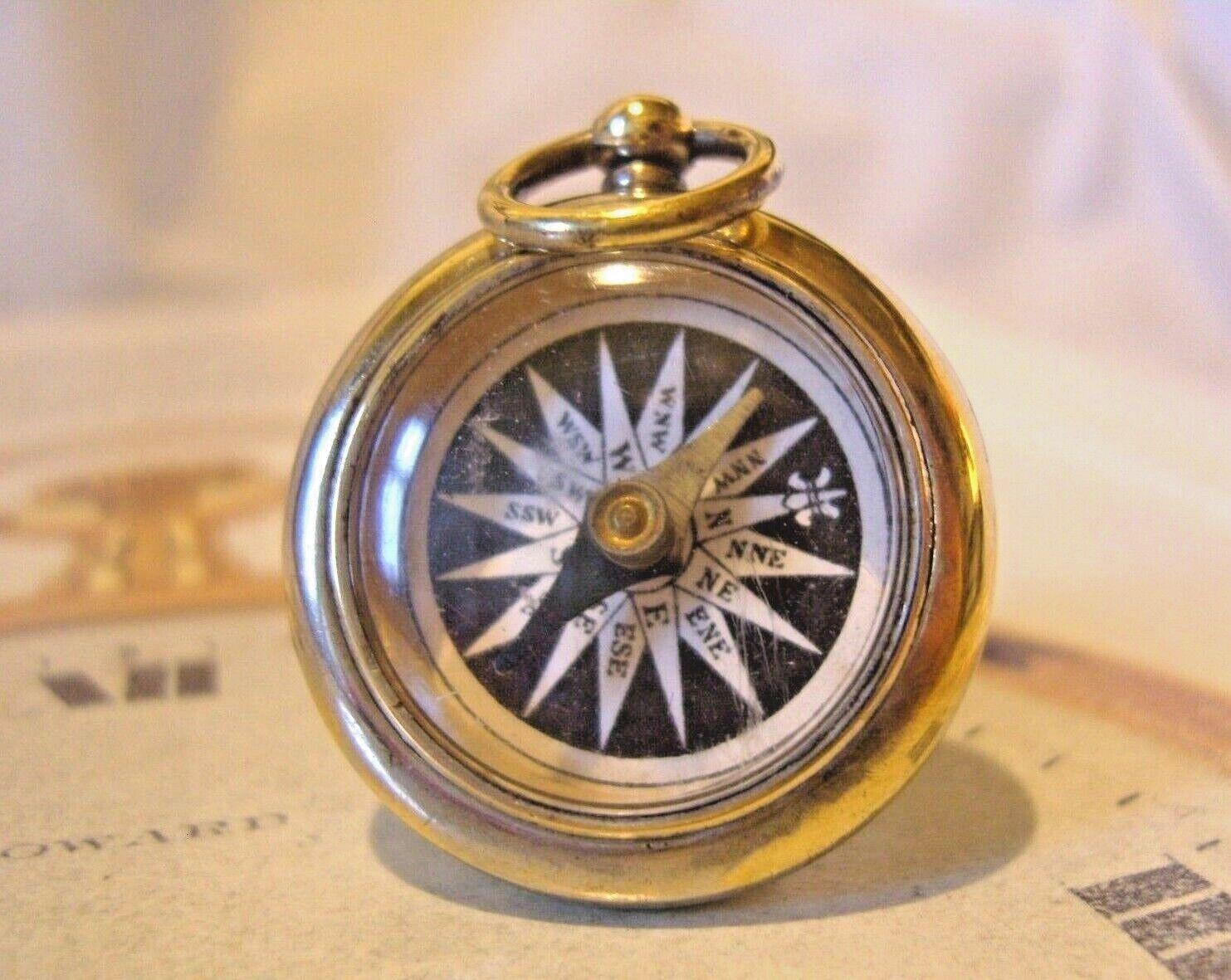 Victorian 1890s Pocket Watch Chain Compass Fob Chunky Brass Antique Working Fob