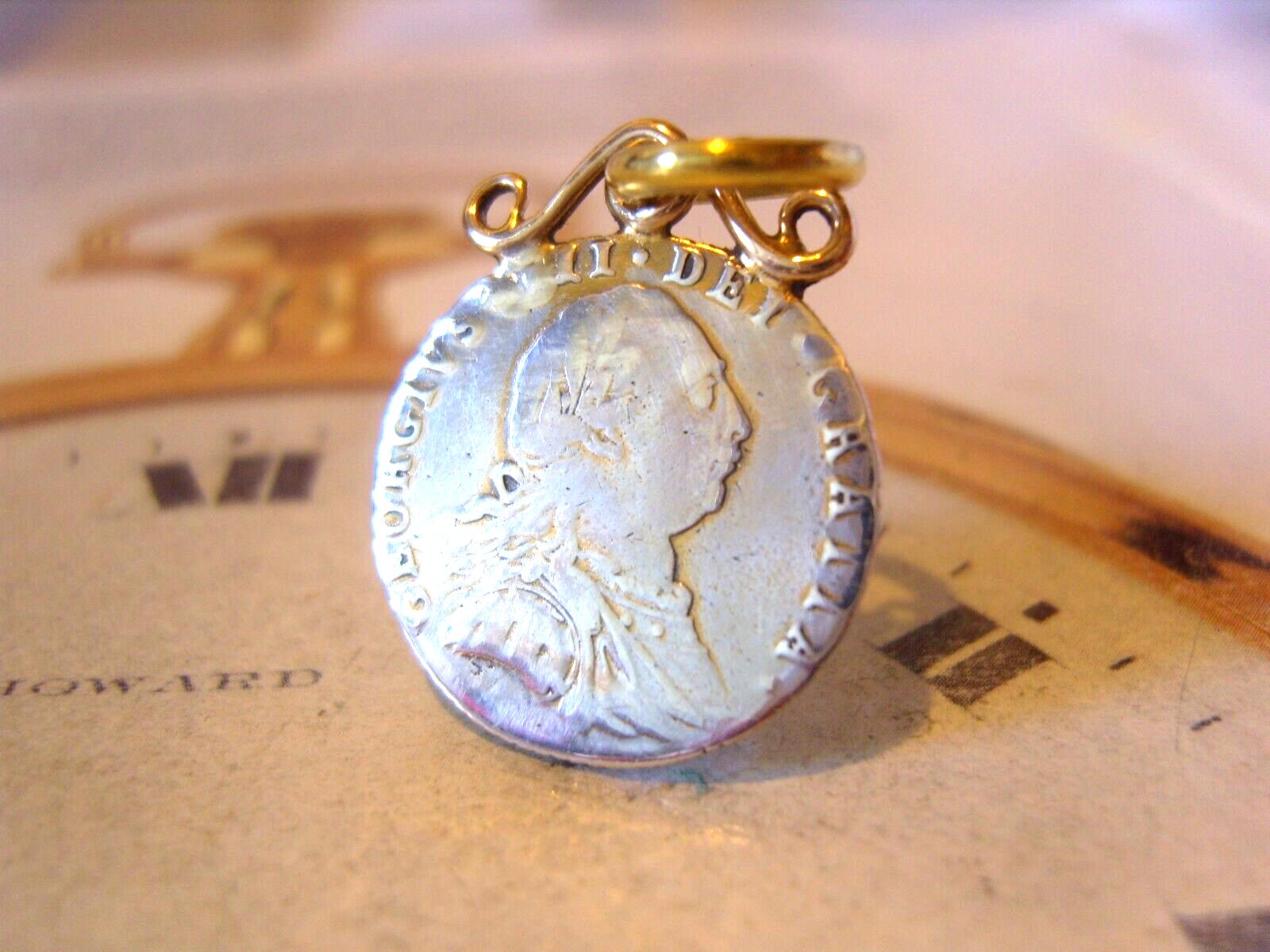 Victorian 1890s Pocket Watch Chain Faux Guinea Coin Fob With Ornate Brass Mount