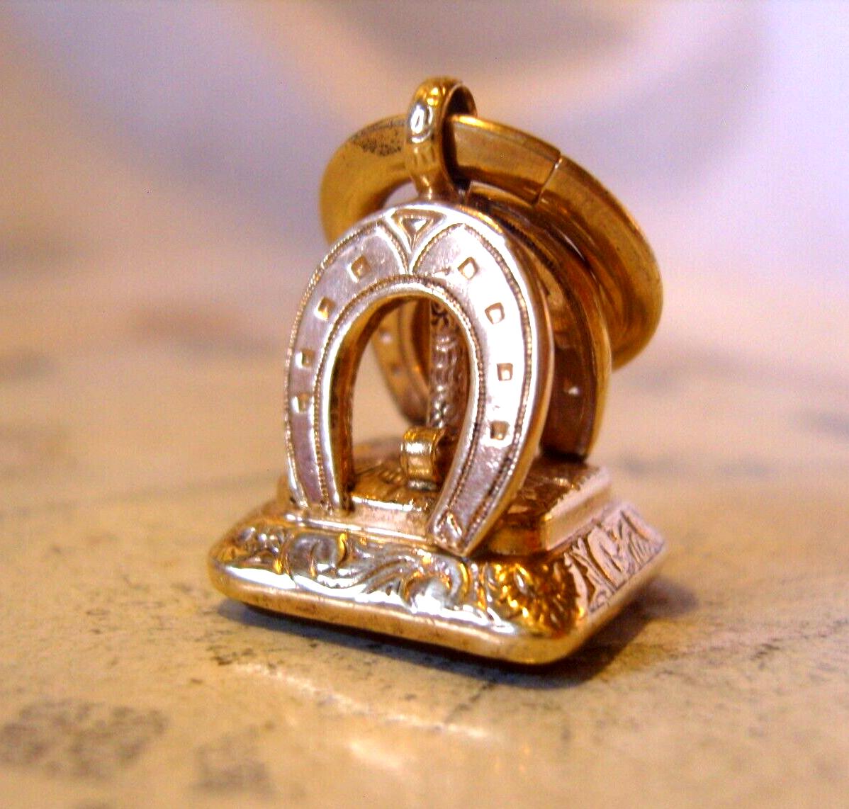 Victorian 1890s Pocket Watch Chain Large Horseshoe Fob Antique 10ct Rose Gold Filled