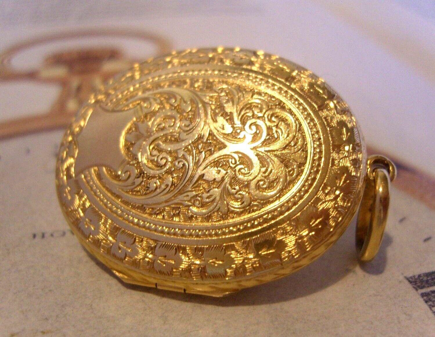 Victorian 1890s Pocket Watch Chain Photograph Fob Antique 16ct Gold Large Puffy Fob