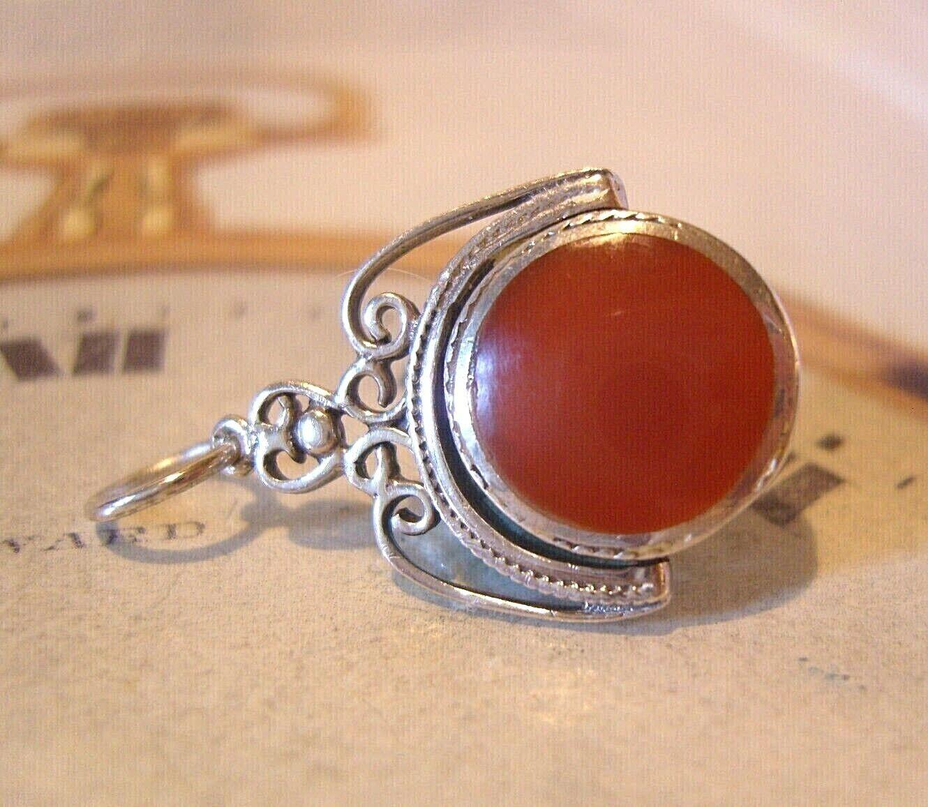 Victorian 1890s Pocket Watch Chain Silver Spinner Fob Antique Onyx & Carnelian Ornate Fob