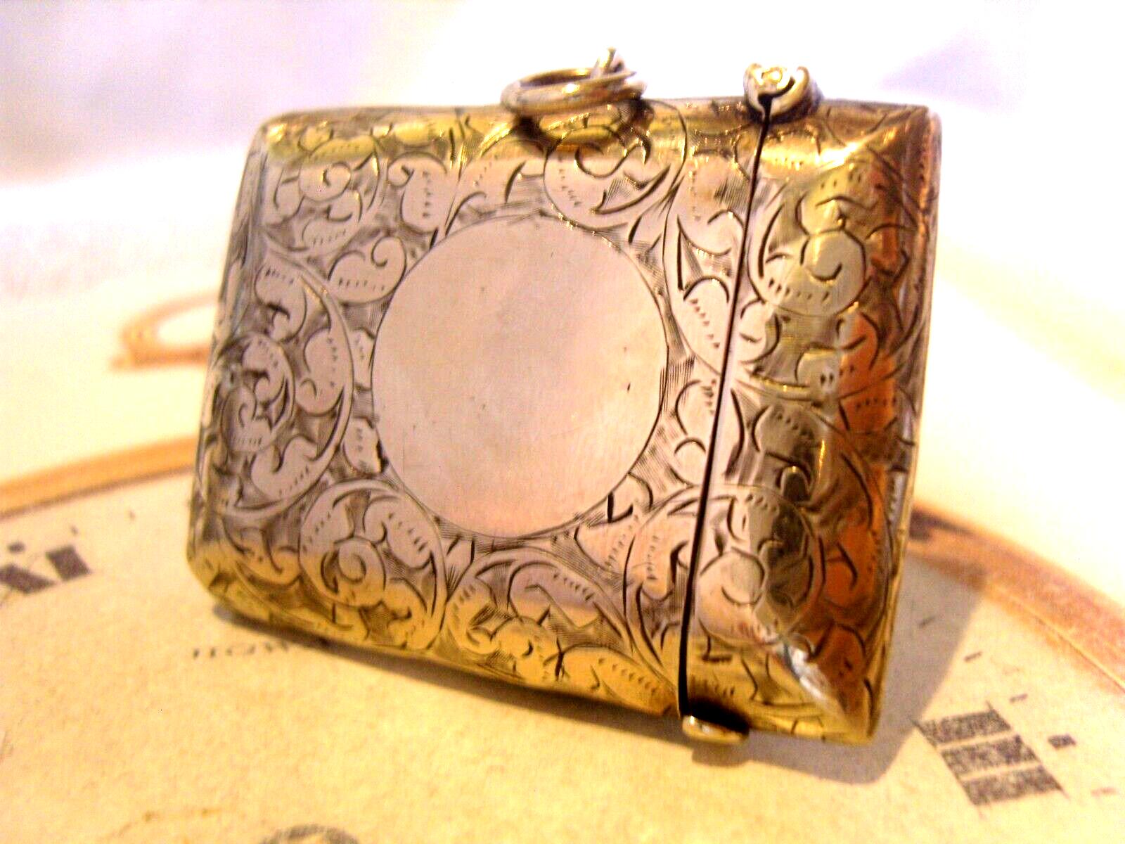 Victorian 1890's Pocket Watch Chain Vesta Case Fob Antique Big Brass Ornate Fob
