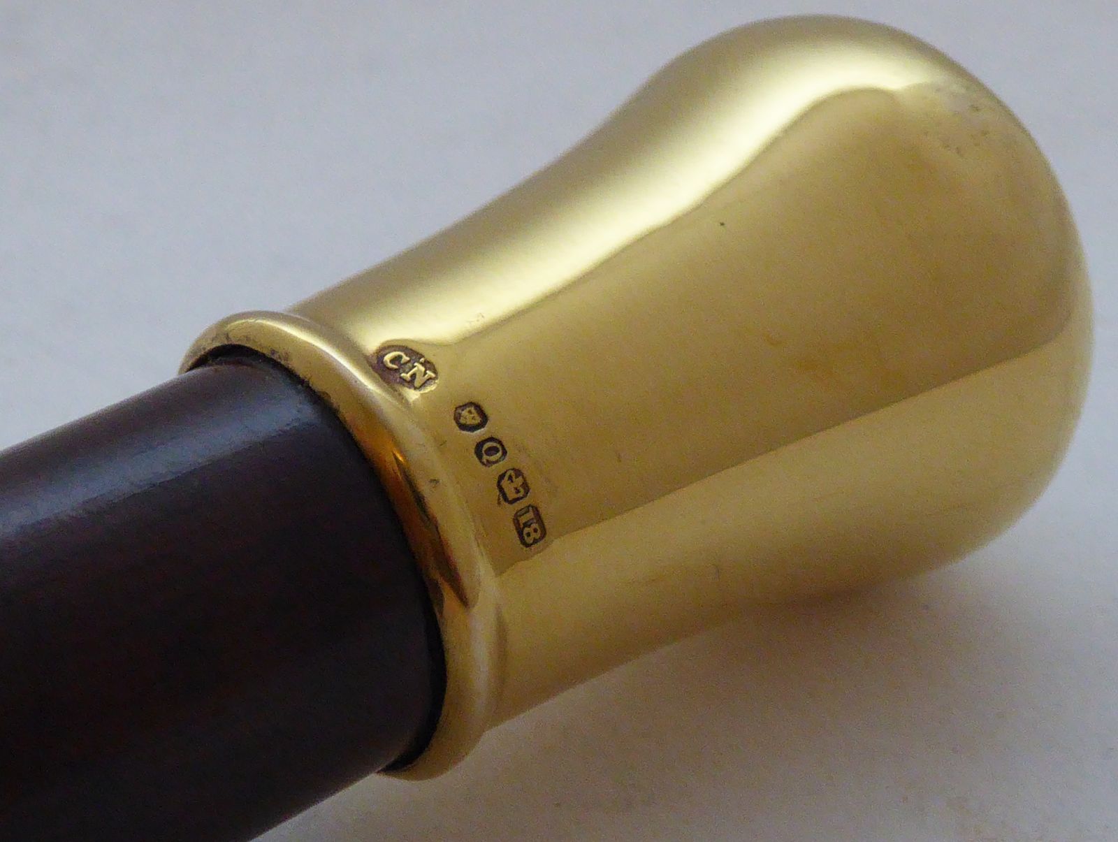 Victorian 1891 18ct Gold Walking Stick Cane Hallmarked Snake Wood