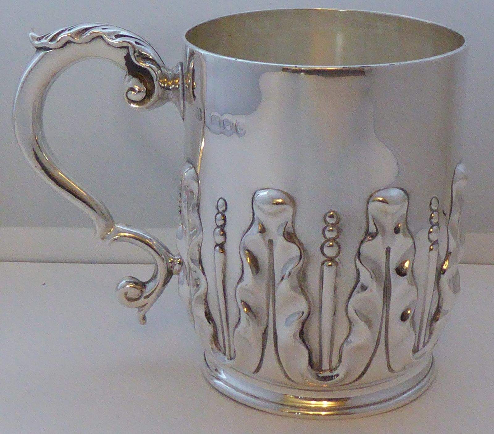 Victorian 1891 Ornate Hallmarked Solid Silver Christening Mug Tankard 1/2 Pint