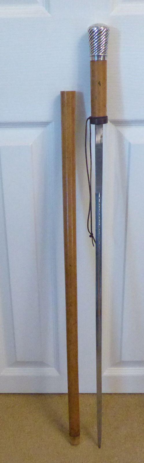 Victorian 1891 Silver Pommel Sword Walking Stick Cane Malacca Shaft Julius Klinkhardt