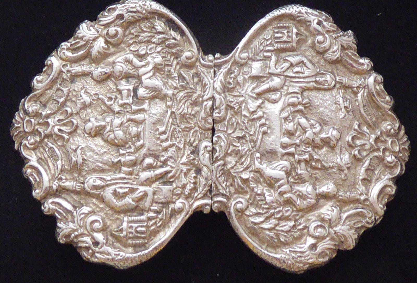Victorian 1892 Hallmarked Solid Silver Nurses Belt Buckle Rare Tavern Scene