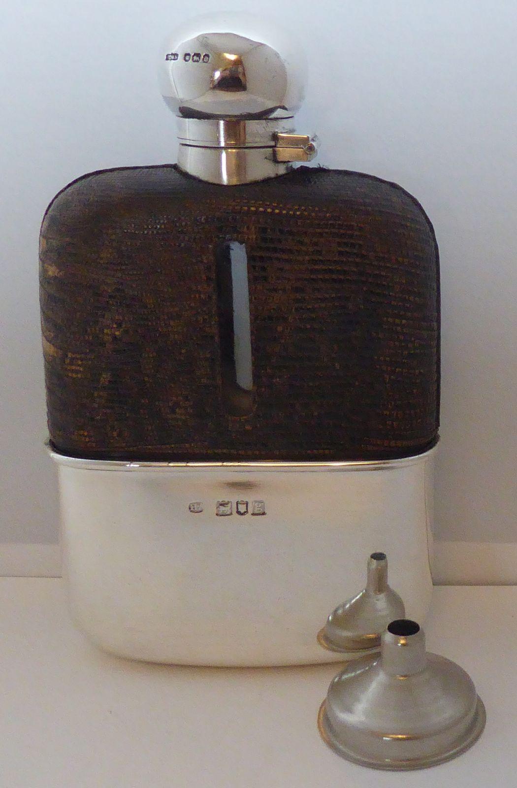 Victorian 1896 Hallmarked Solid Silver Snake Skin Bound Glass Hip Flask J Dixon