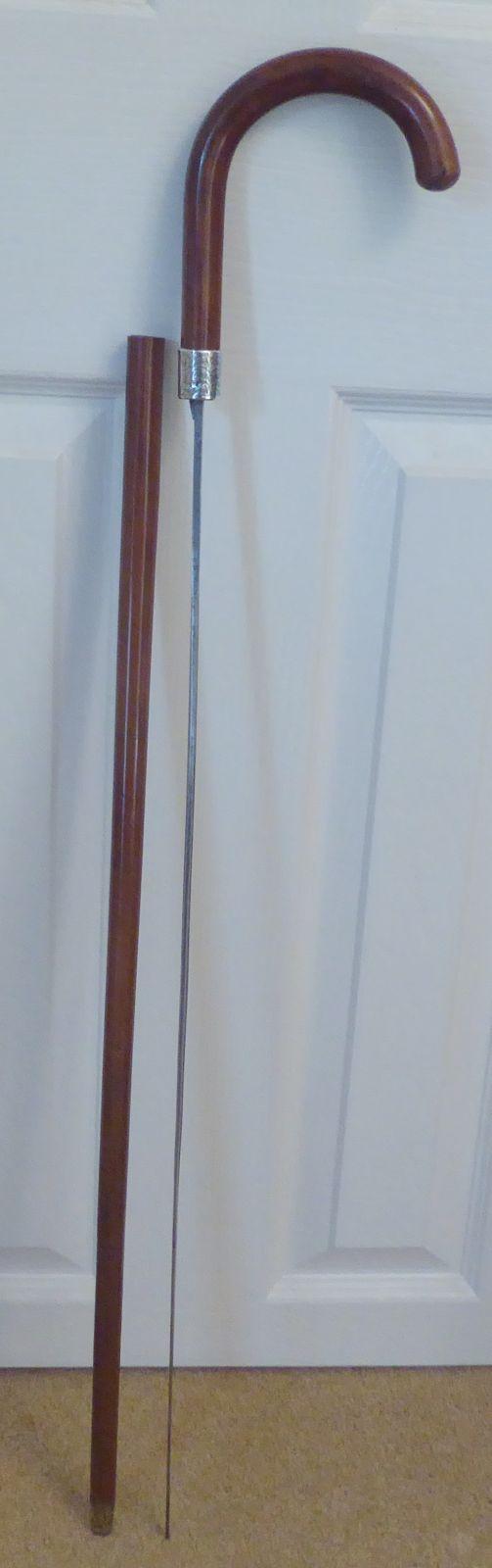 Victorian 1896 Silver Collar Crook Handle Sword Stick Walking Stick Cane