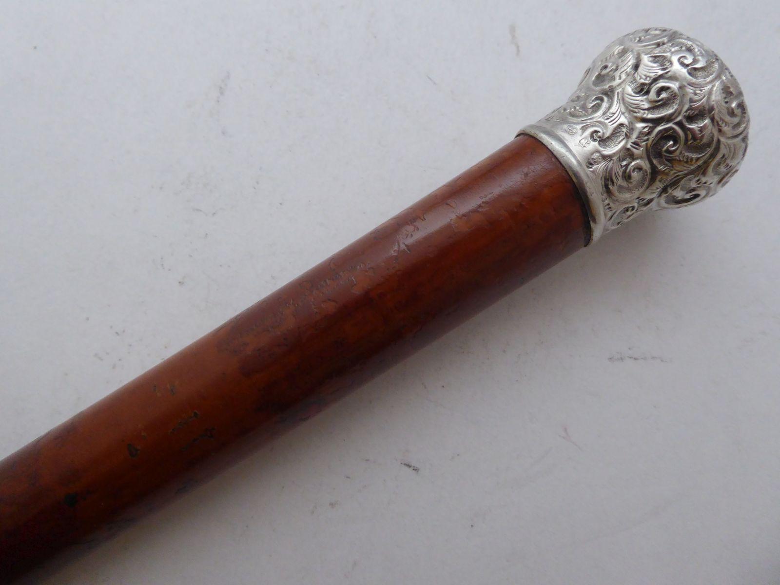 Victorian 1897 Walking Stick Cane Hallmarked Solid Silver Pommel Malacca Shaft