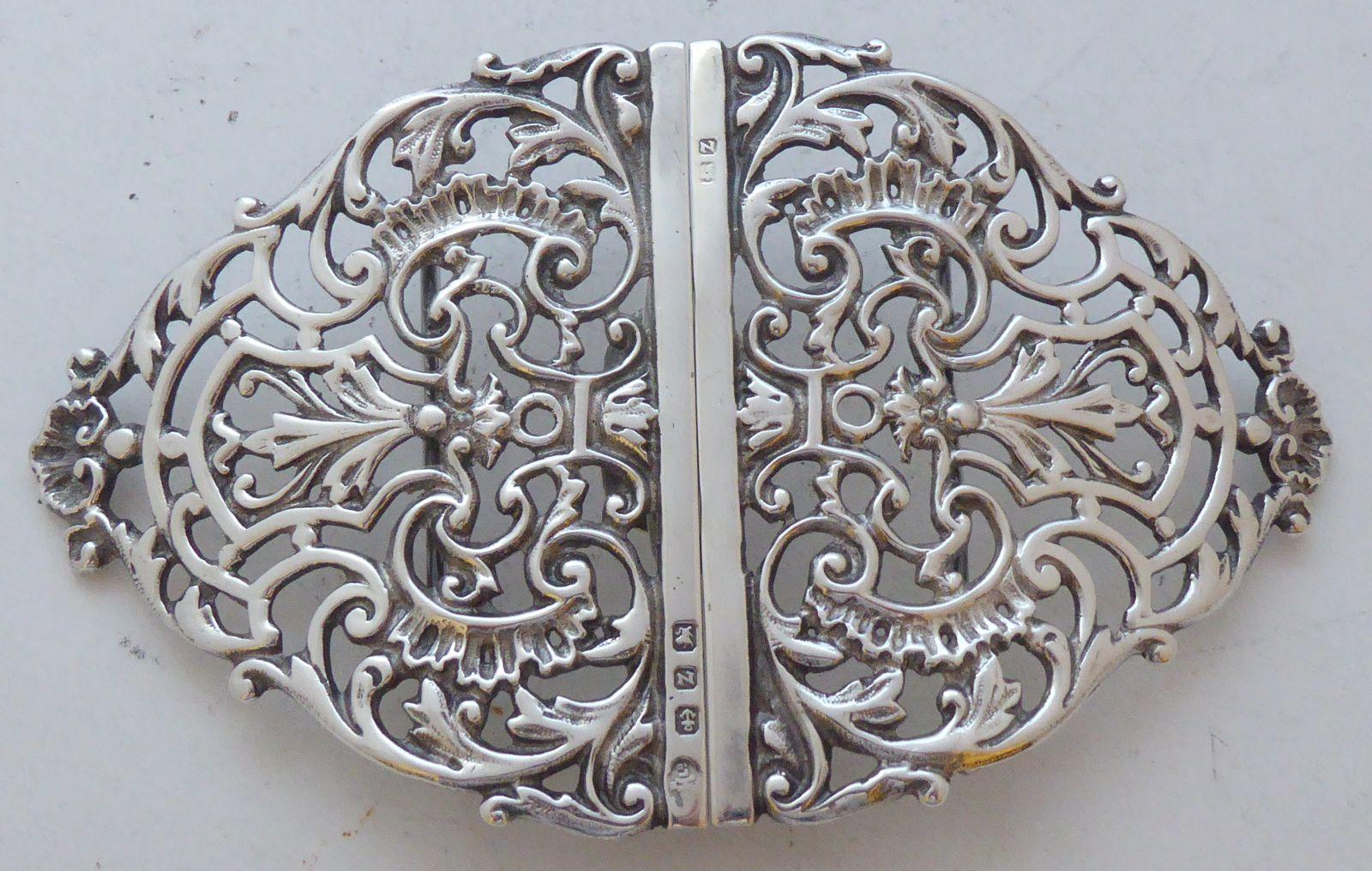 Victorian 1899 Birmingham Hallmarked Solid Silver Nurses Belt Buckle W Hutton