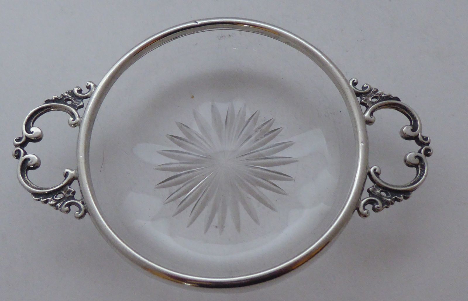 Victorian 1899 Wine Taster Quaich Taste De Vin Solid Silver & Cut Glass