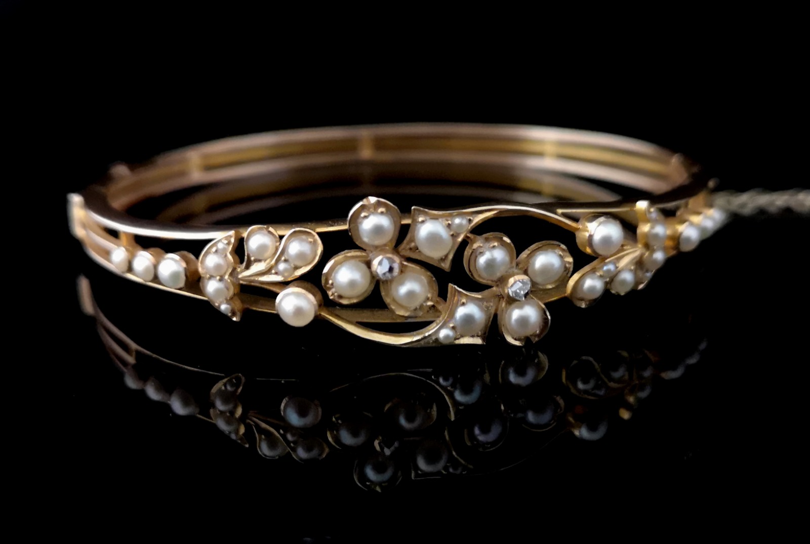 Victorian 18ct Gold Bangle, Pearl & Diamond