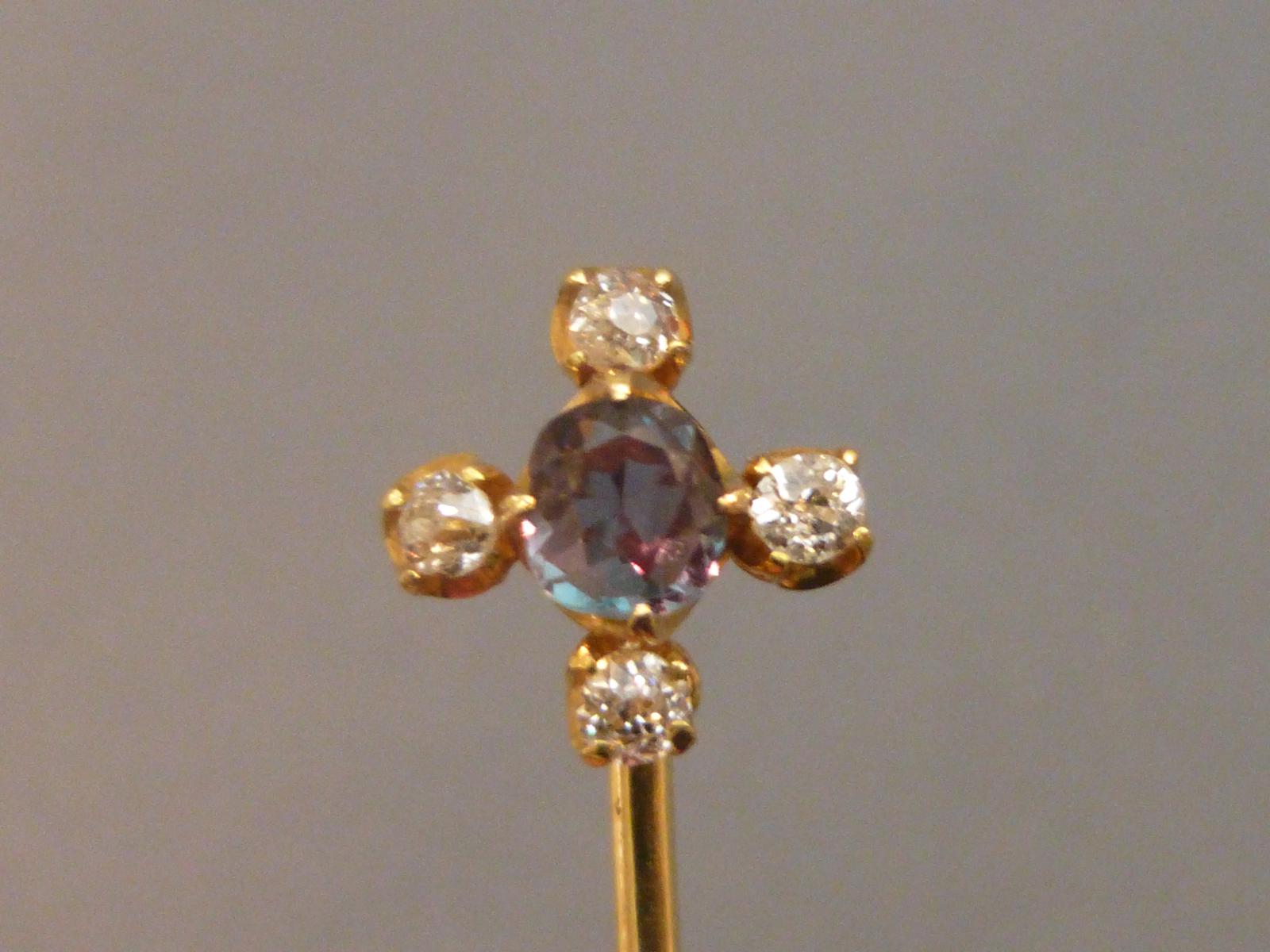 Victorian 18ct Gold, Diamond & Alexandrite Stickpin