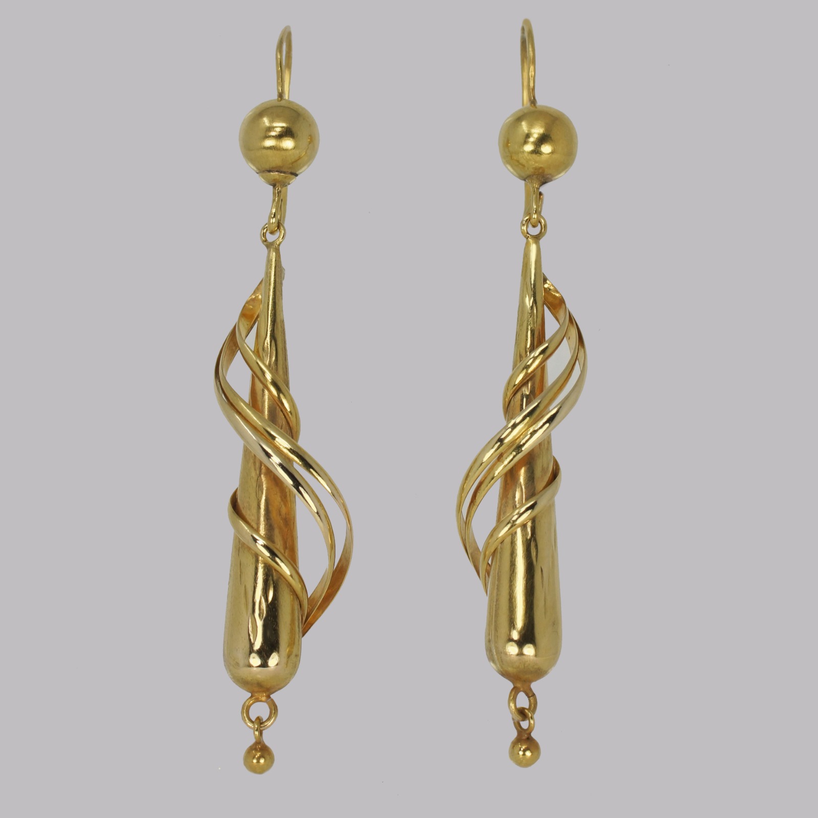 Victorian 18ct Gold Drop Earrings Antique 2 1/2" Long Dangling Earrings c.1890