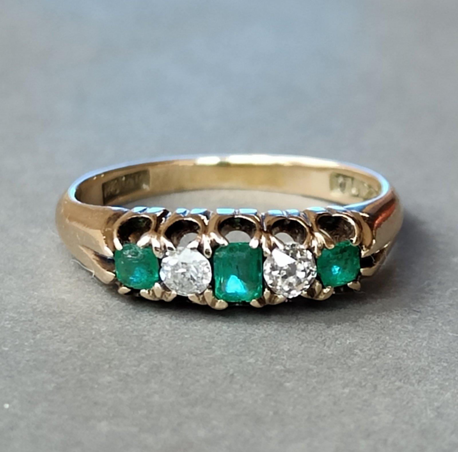Victorian 18ct Gold Emerald Diamond Gypsy Ring (1 of 11)