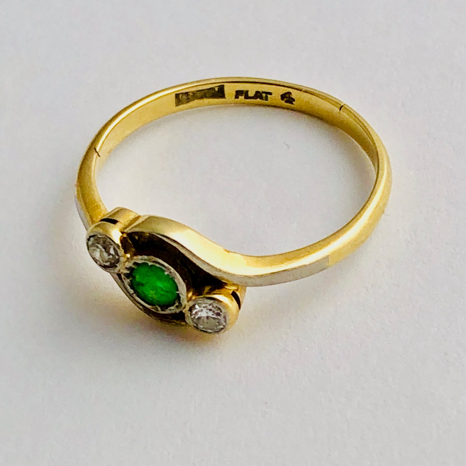 Victorian 18ct Gold & Platinum Ring with Emerald & Diamonds