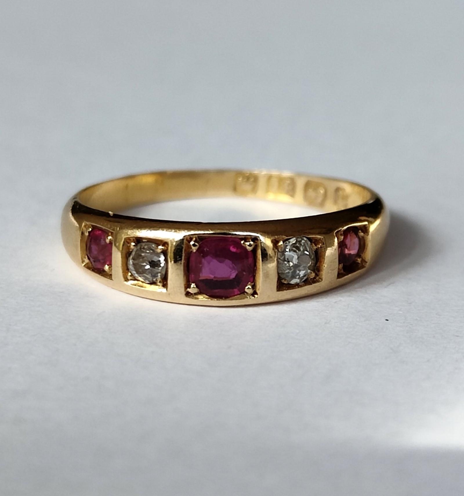 Victorian 18ct Gold Ruby Diamond Gypsy Ring 1890