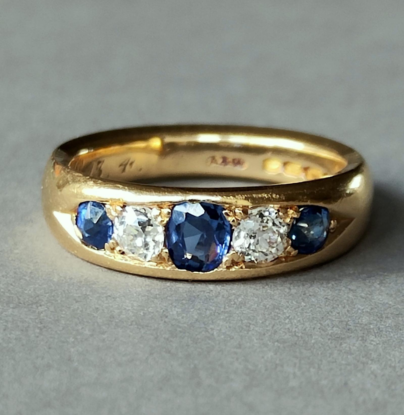 Victorian 18ct Gold Sapphire Diamond Gypsy Ring (1 of 12)
