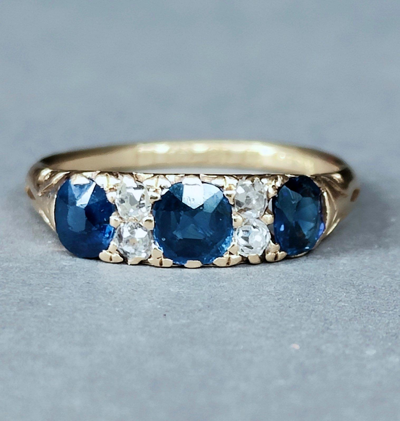 Victorian 18ct Gold Sapphire & Diamond Ring c.1888