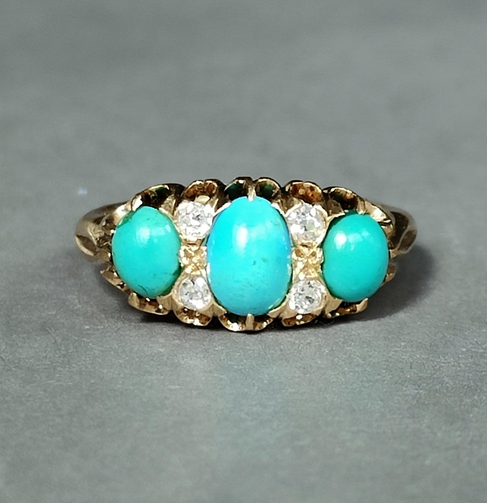 Victorian 18ct Gold Turquoise Diamond Ring (1 of 8)