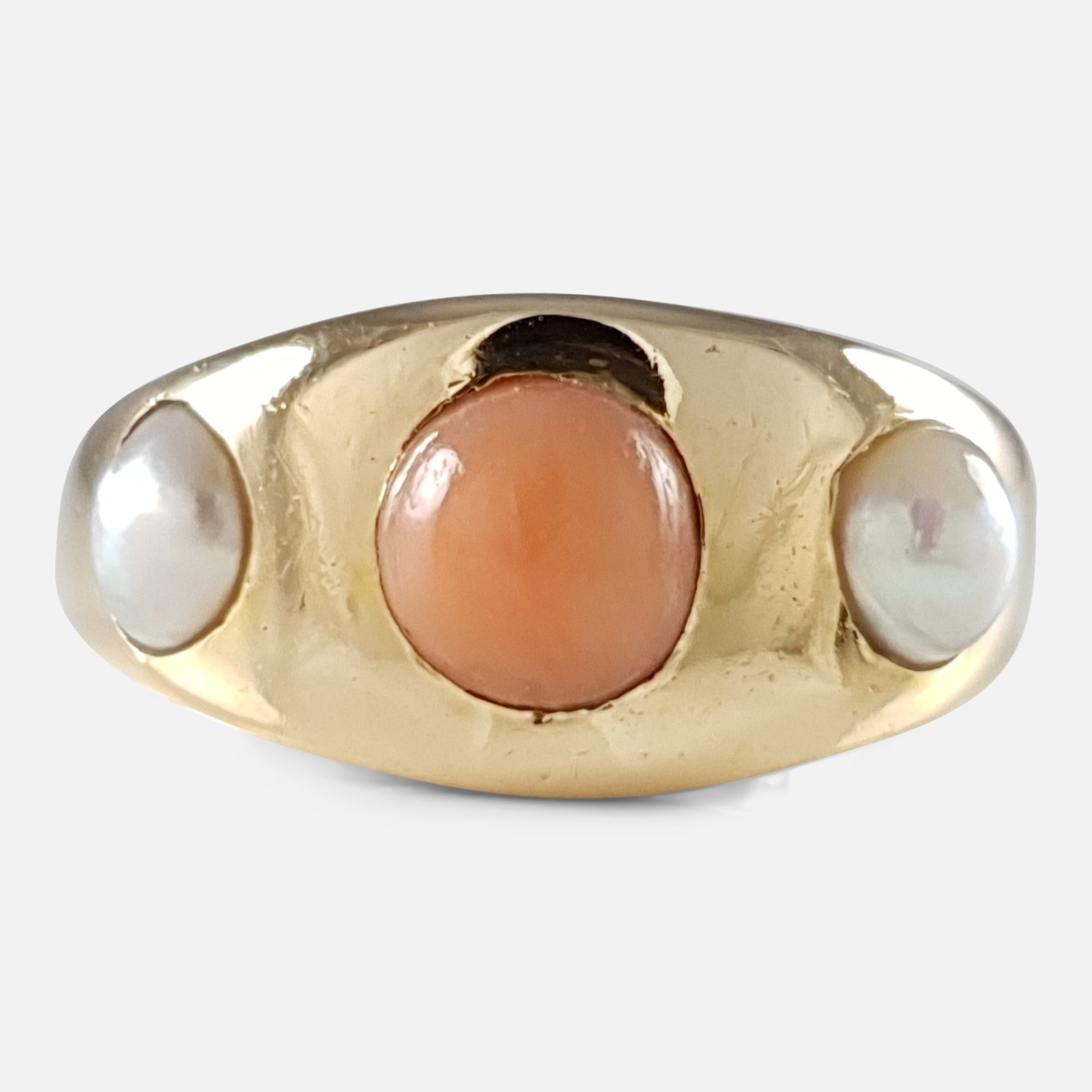 Victorian 18ct Yellow Gold Coral & Pearl Ring c.1888