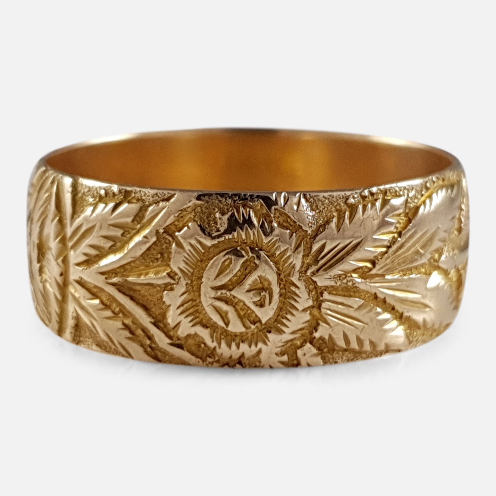 Victorian 18ct Yellow Gold Foliate Engraved Wedding Band Ring