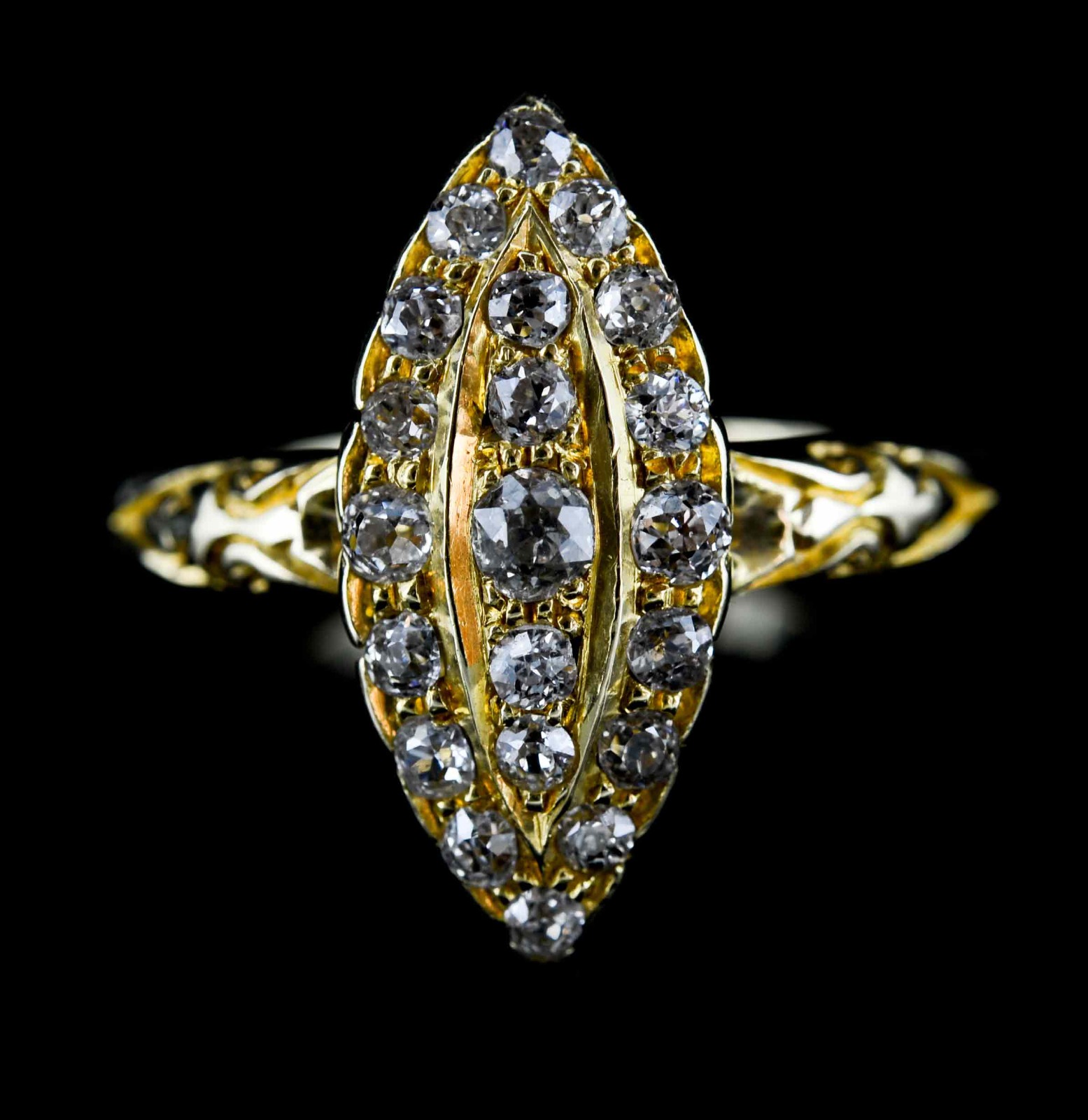 Victorian 18ct Yellow Gold Navette Shaped Diamond Ring