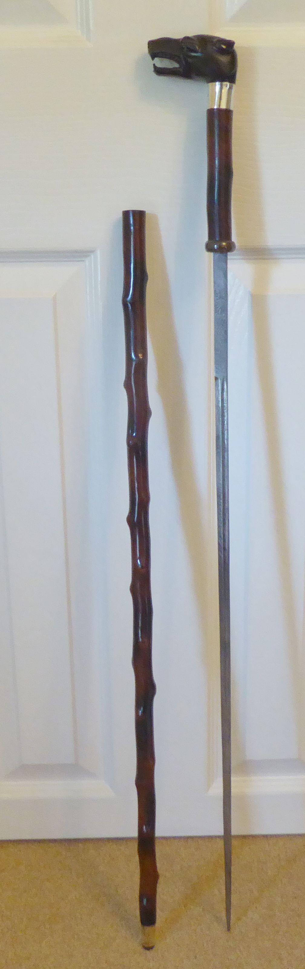 Victorian 1900 Hound Head & Silver Toledo Sword Walking Stick Cane Toledo Blade