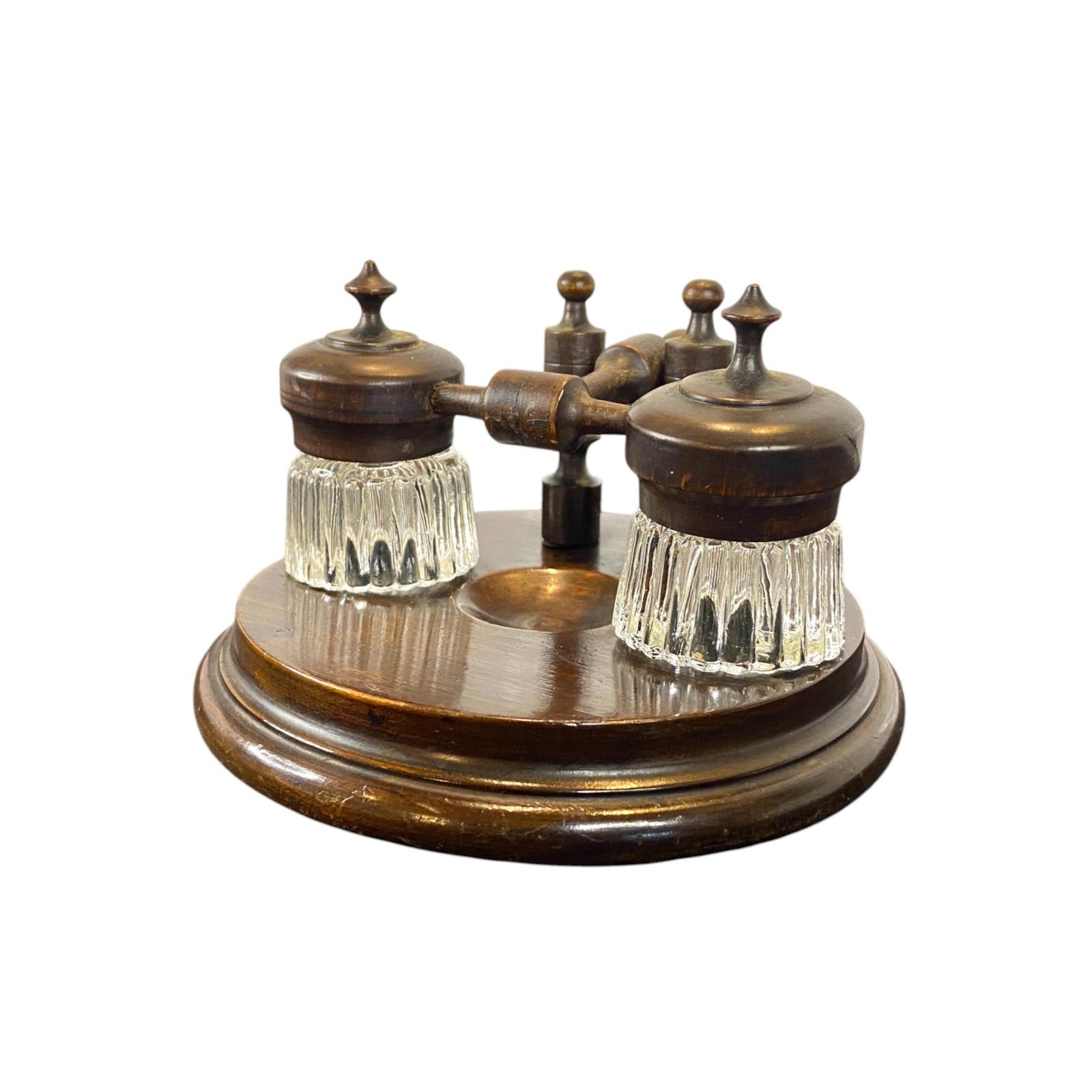 Victorian 1900s Twin Pot Desk Inkwell with Flip Top Lid