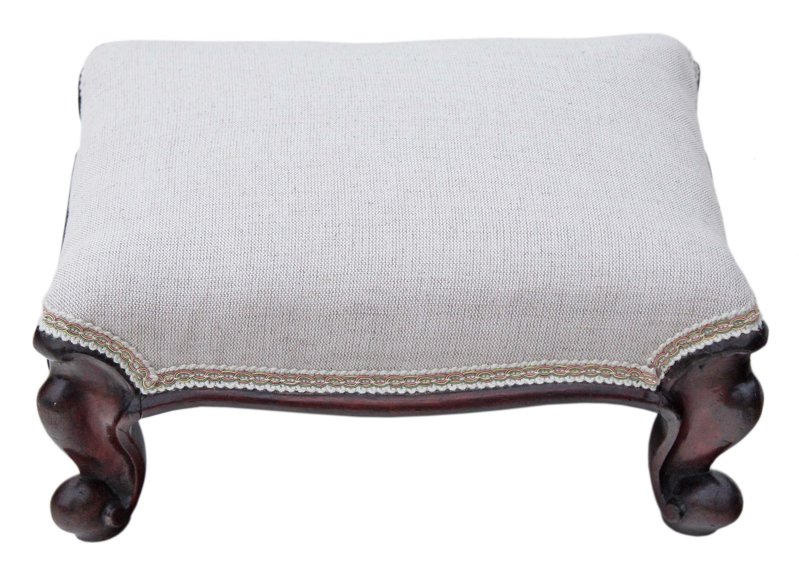 Victorian 19C carved mahogany small upholstered foot stool
