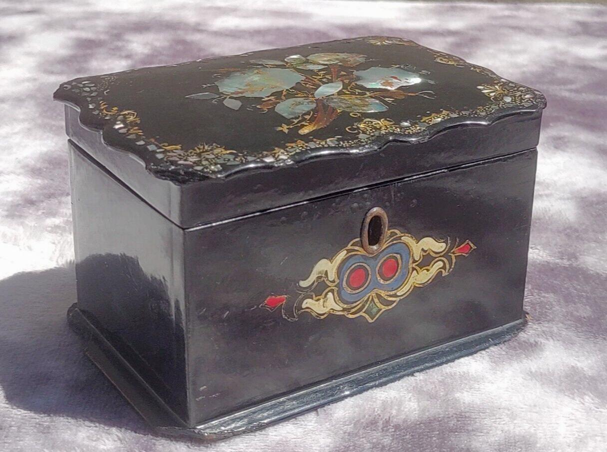 Victorian 19th Century Antique Papier Mache Abalone Inlay Jewellery Trinket Box
