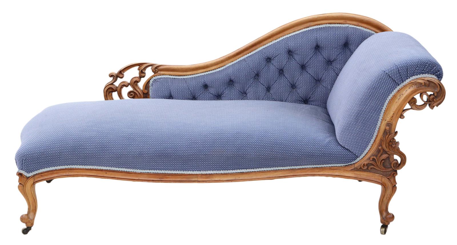 Victorian 19th Century Carved Walnut Chaise Longue Sofa