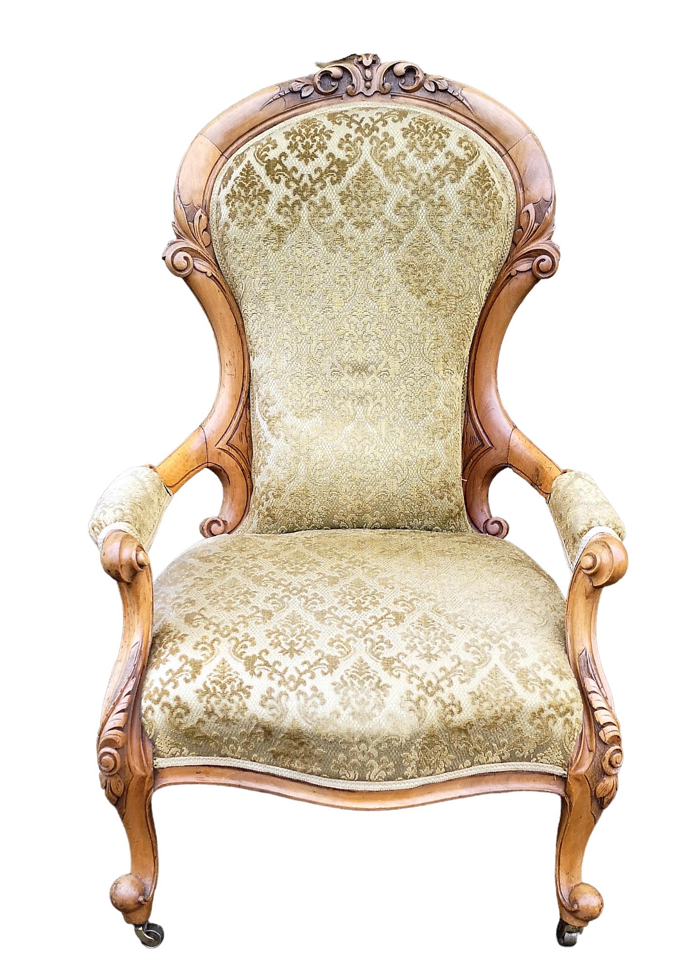 Victorian 19th Century Carved Walnut Gents Armchair (1 of 13)