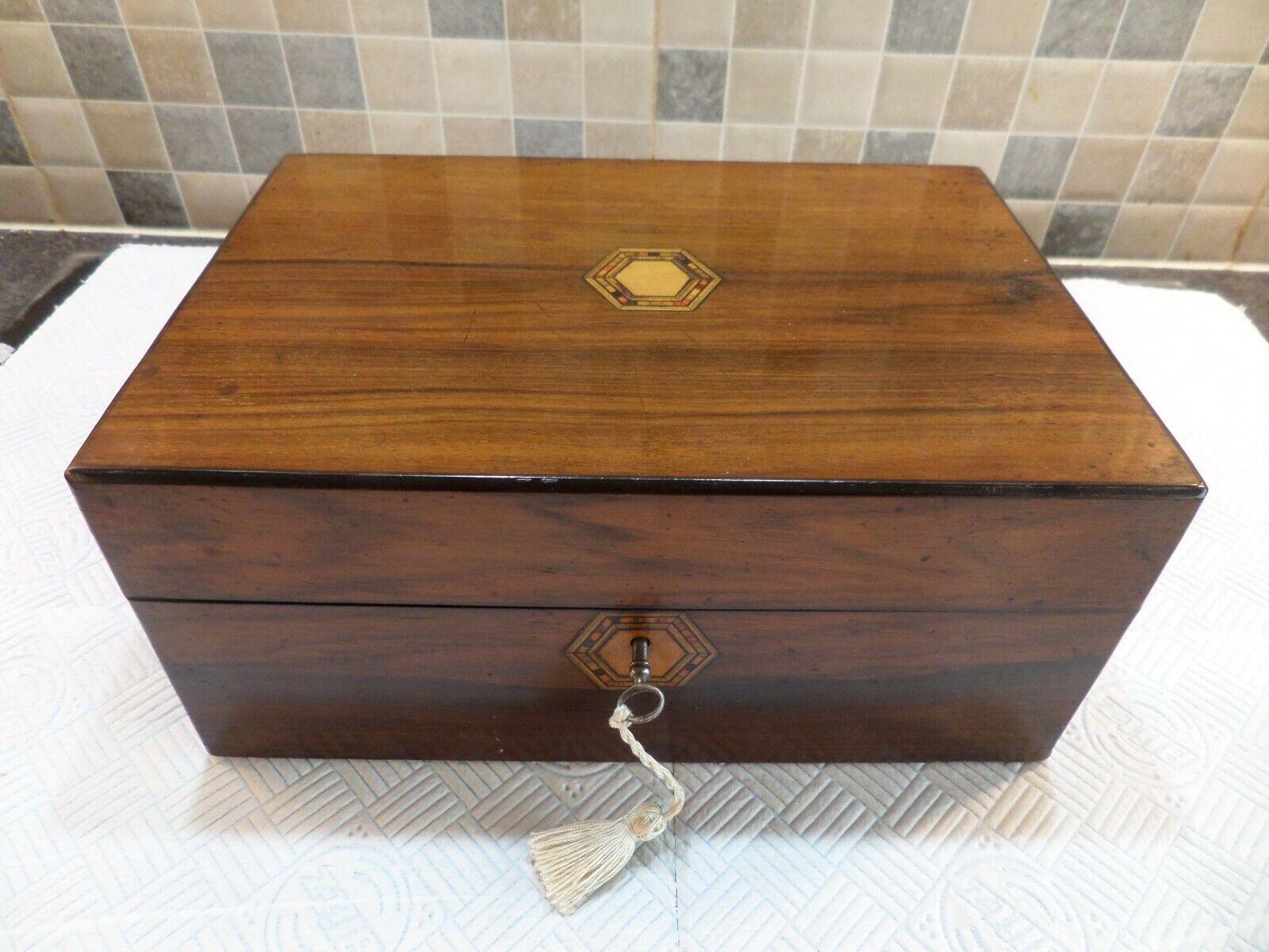 Victorian 19th Century Inlaid Burr Walnut Box - Lovely Interior With Tray - Lock & Key