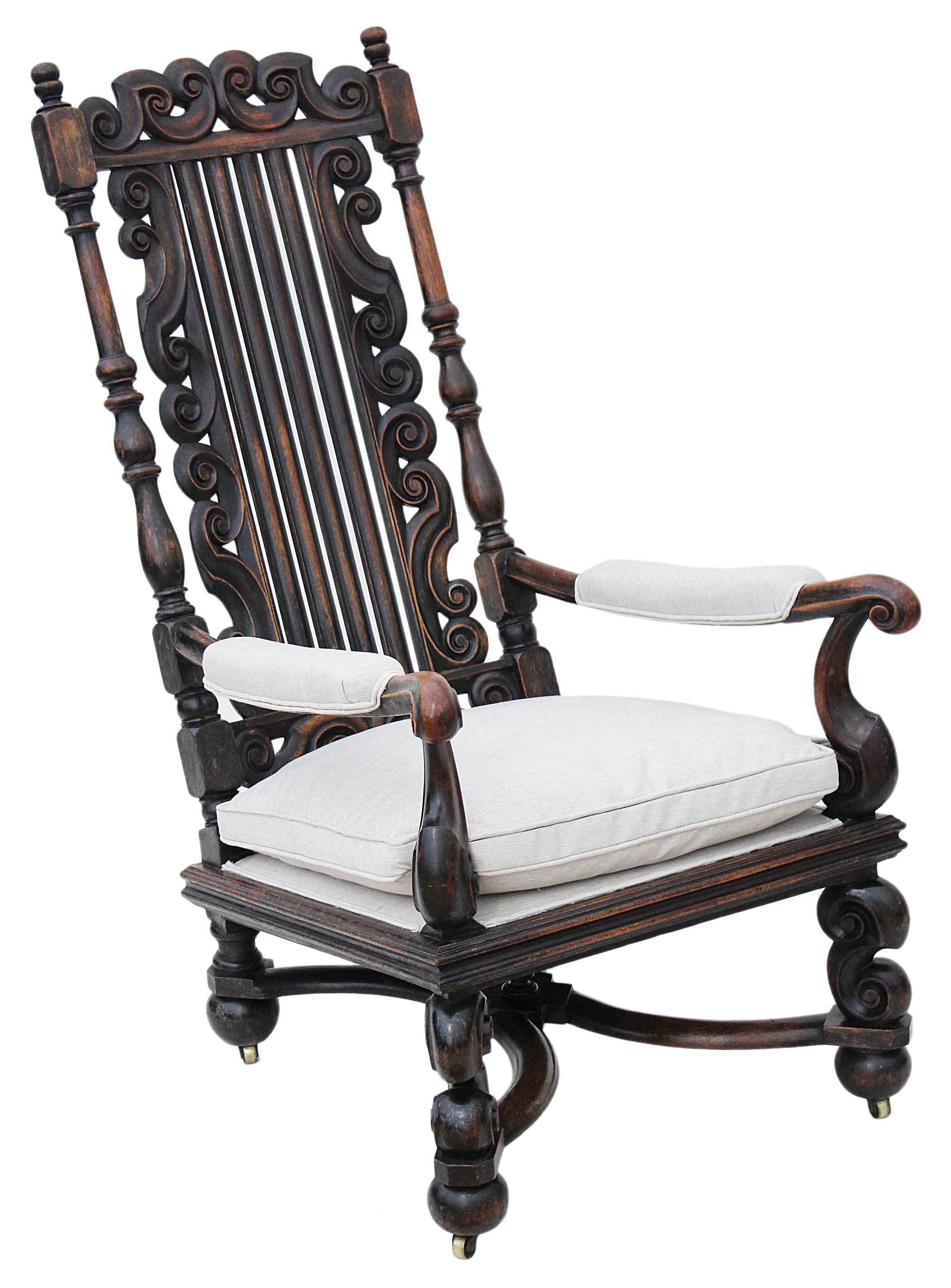 Victorian 19th Century Oak Walnut Armchair Throne Chair