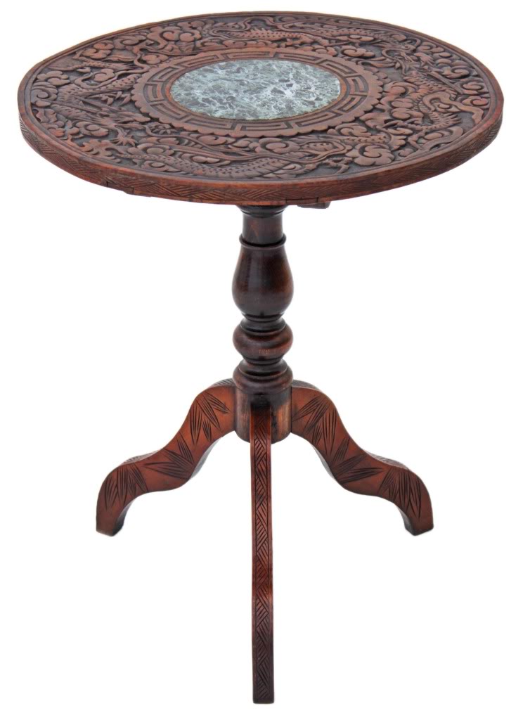 Victorian 19th Century Oak Walnut Marble Occasional Table / Lamp Table / Side Table