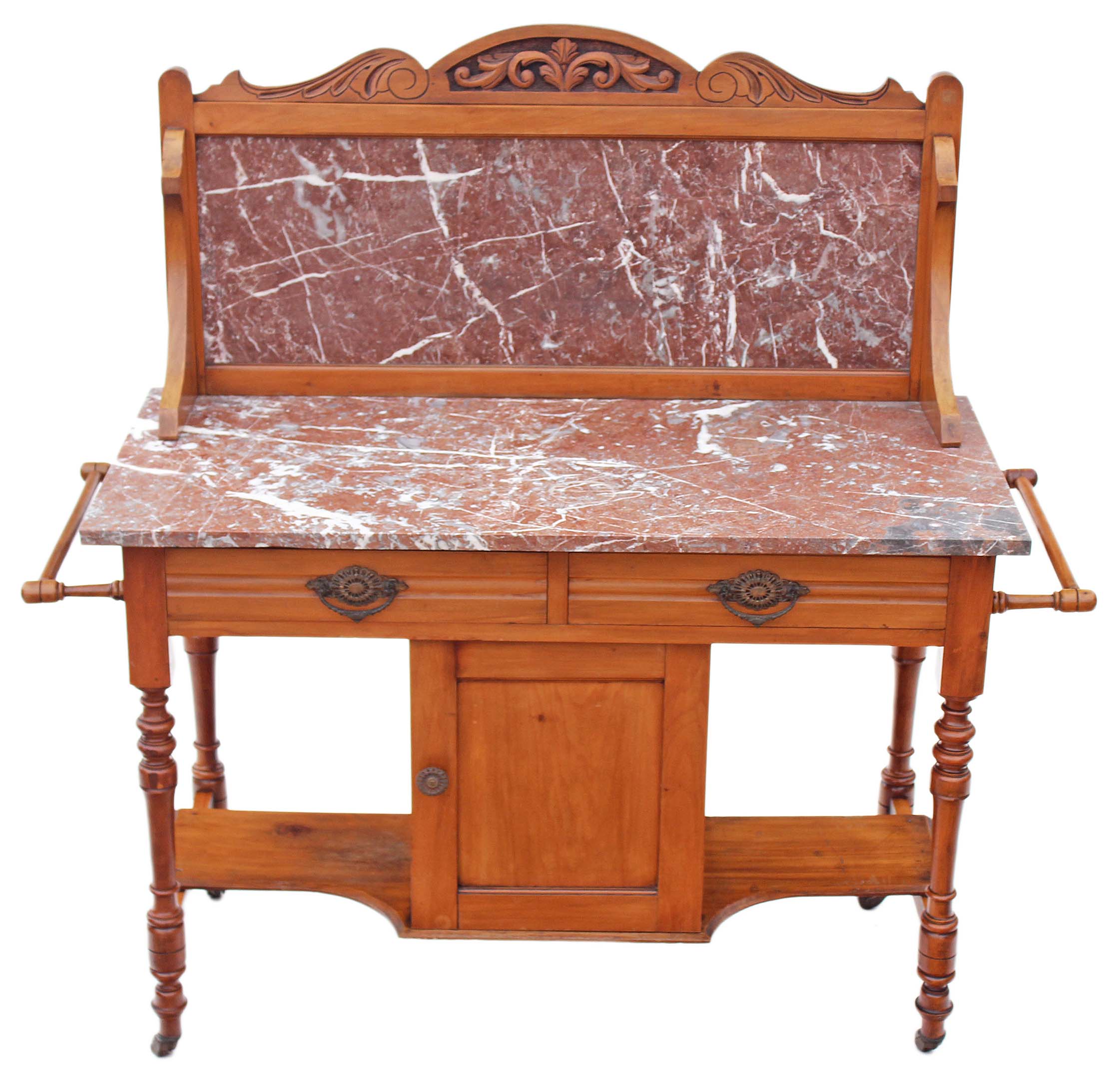 Victorian 19th Century Satinwood Marble Washstand / Side or Dressing Table
