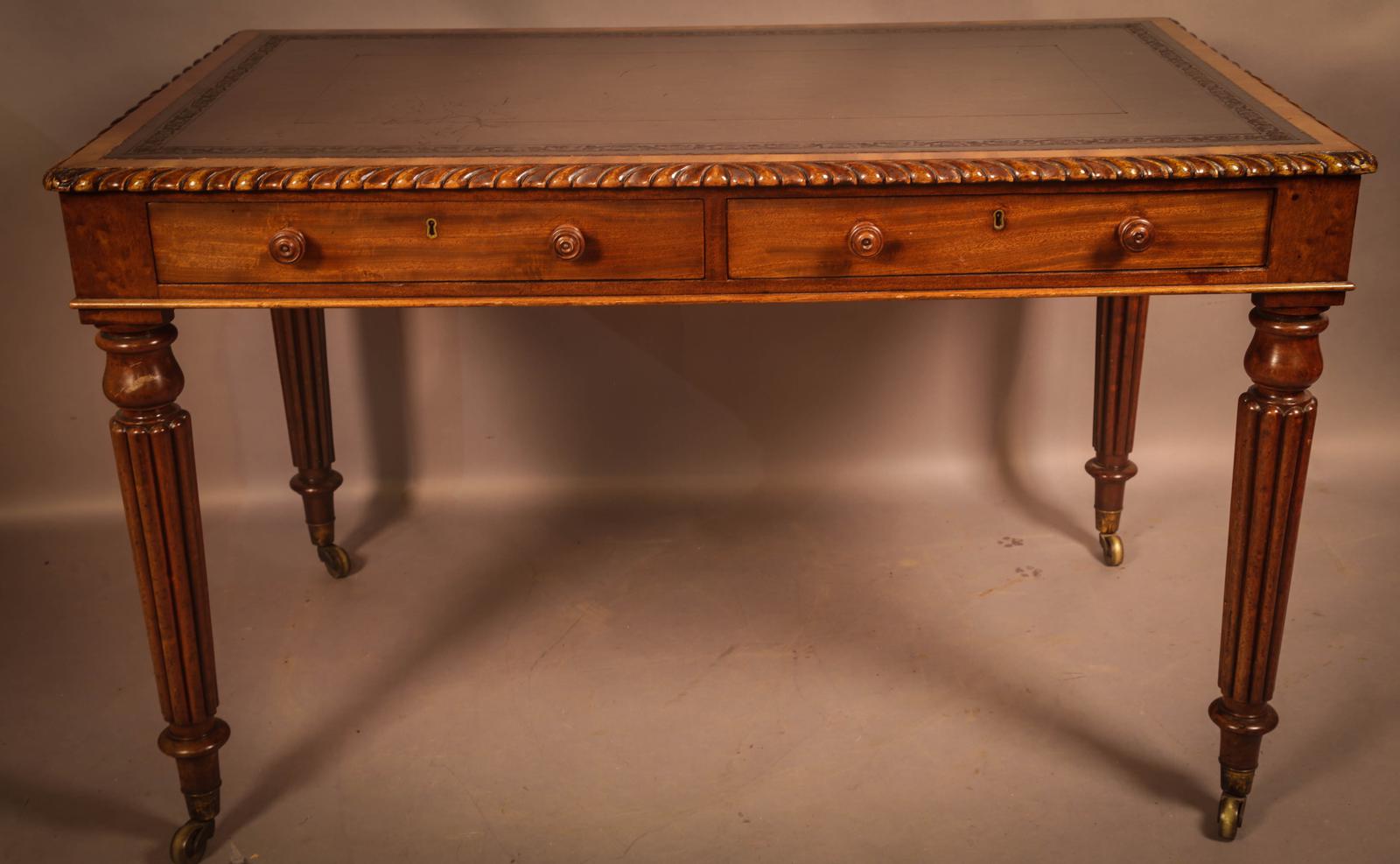 Victorian 2 Drawer Mahogany Library Desk Table
