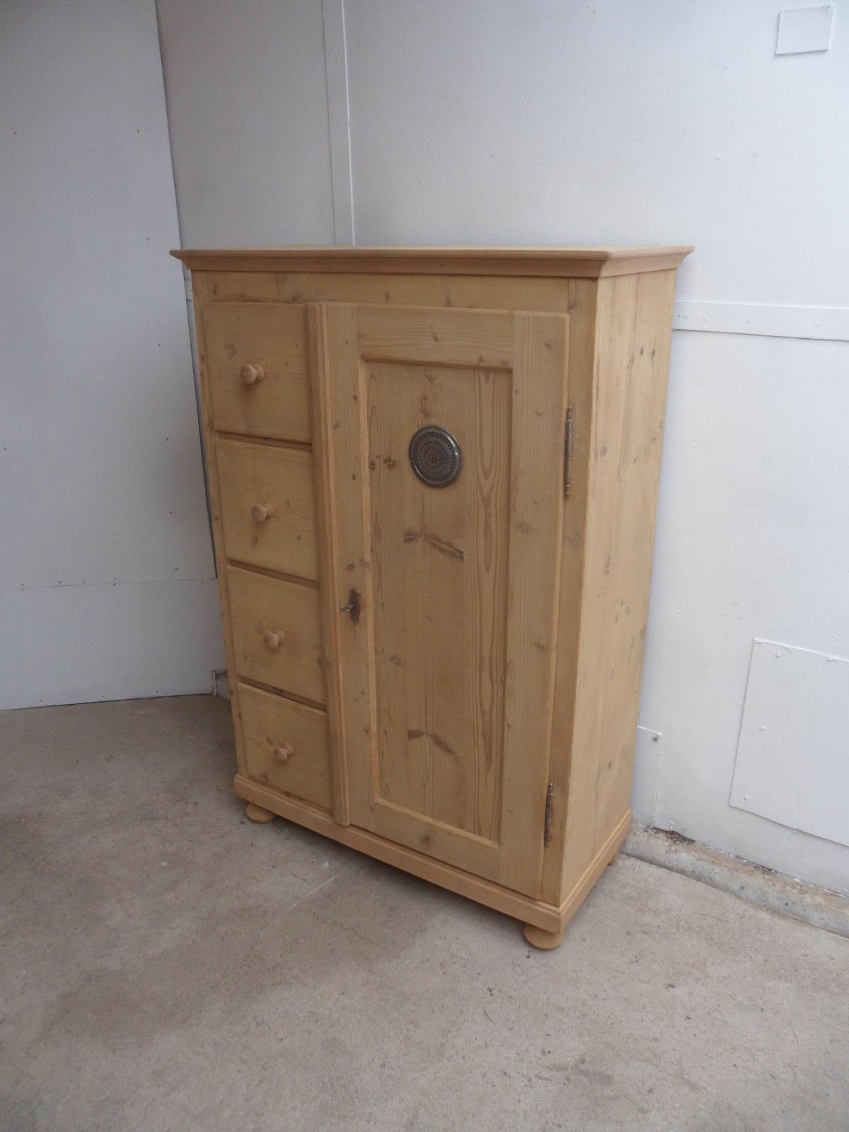Victorian 4 Drawer 1 Door Antique Pine Kitchen Food Cupboard to wax / paint