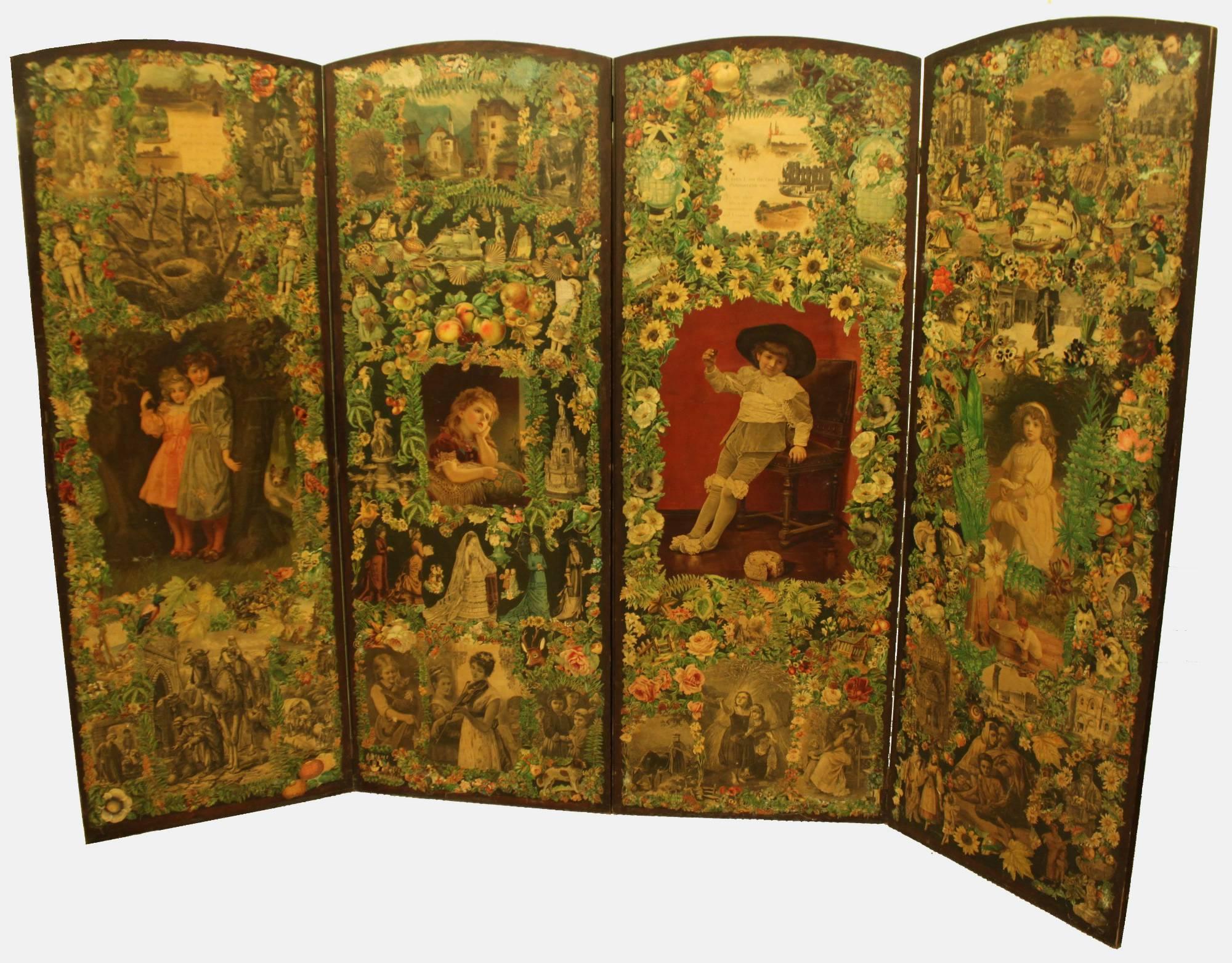 Victorian 4 Fold Scrap Screen