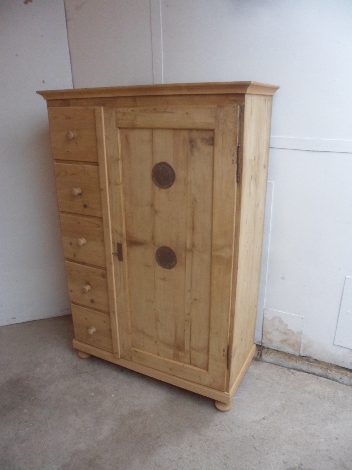 Victorian 5 Drawer 1 Door Antique Pine Kitchen / Storage Cupboard to wax / paint