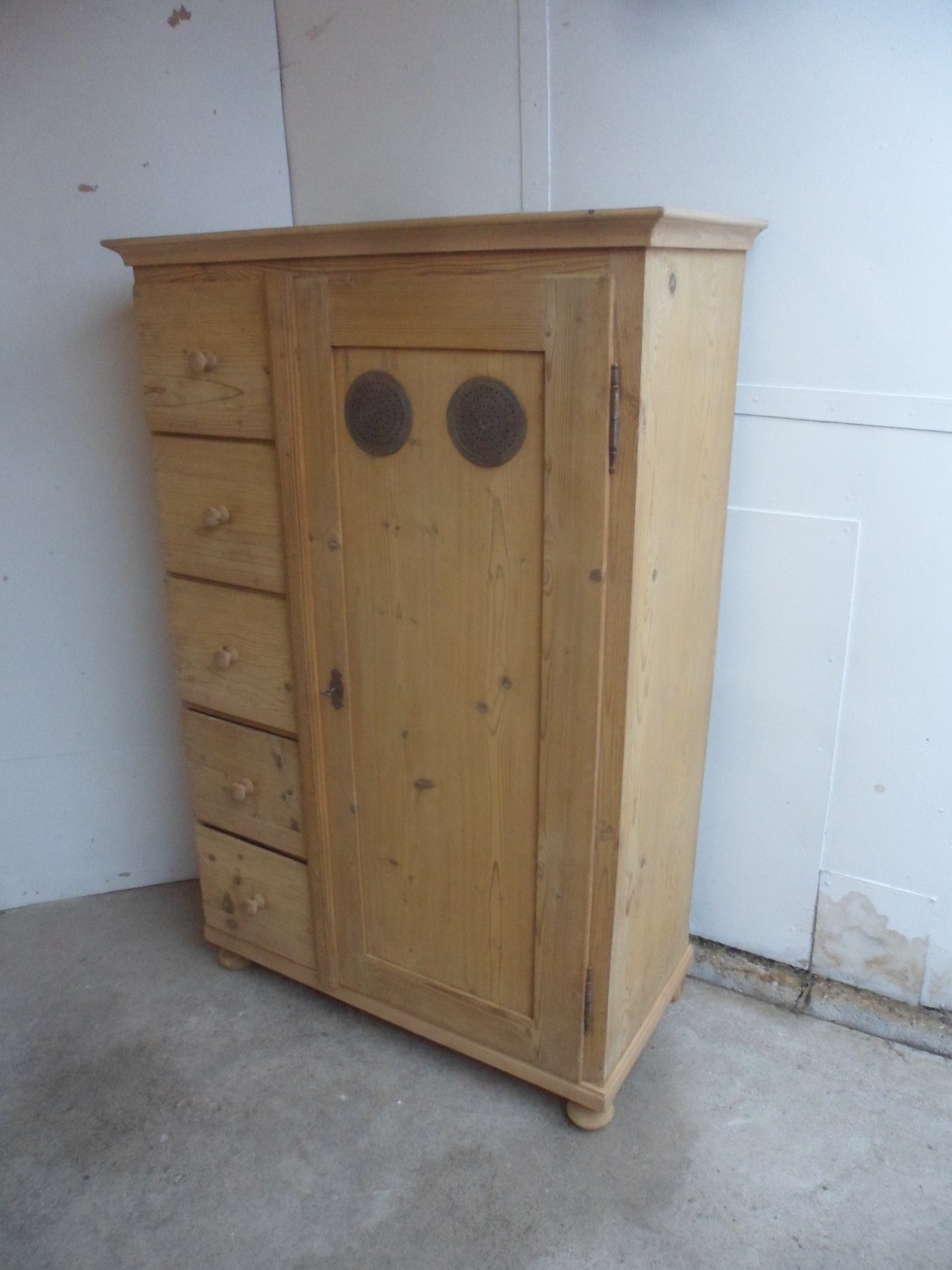 Victorian 5 Drawer 1 Door Old Pine Kitchen / Food Cupboard to wax / paint