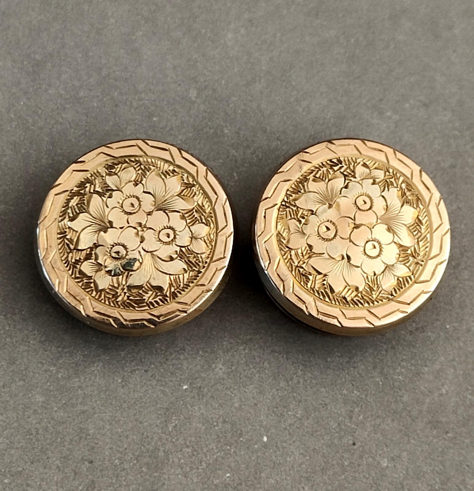 Victorian 9ct Engraved Gold Stud Earrings in Fitted Case c.1900 (1 of 12)