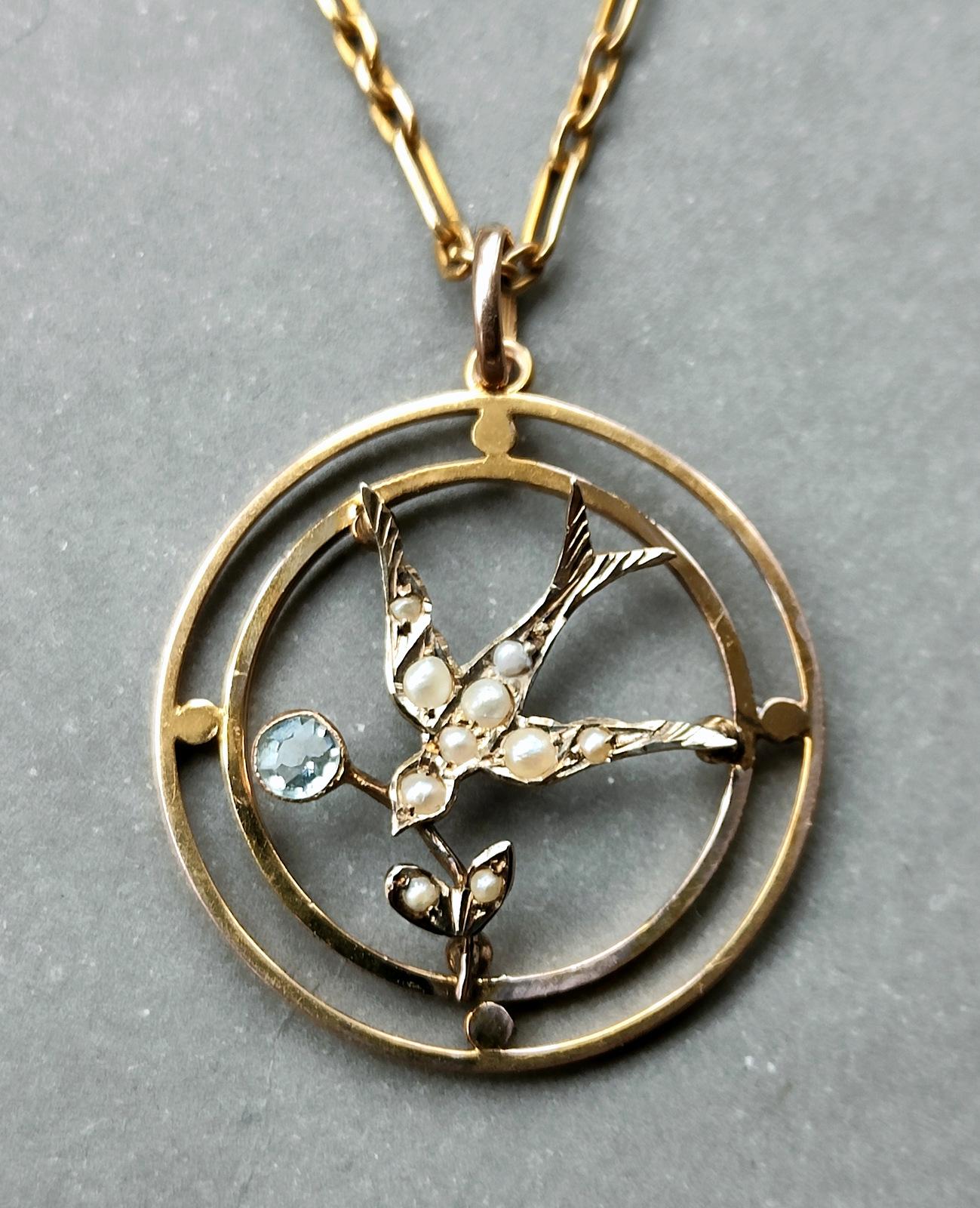 Victorian 9ct Gold Aquamarine Swallow Pendant Necklace (1 of 10)