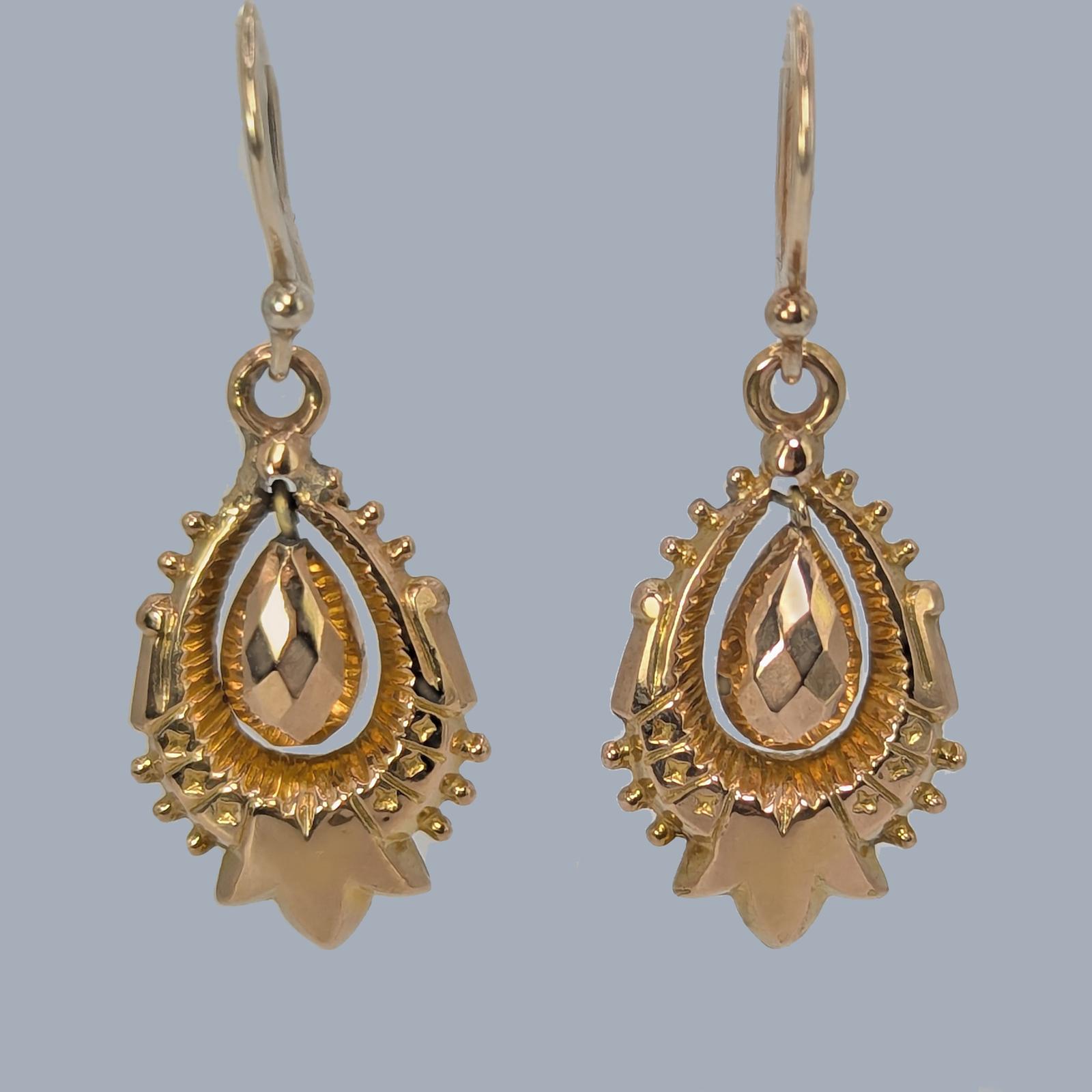 Victorian 9ct Gold Dangle Earrings Antique Articulated 1.5" Drop Earrings Circa 1890