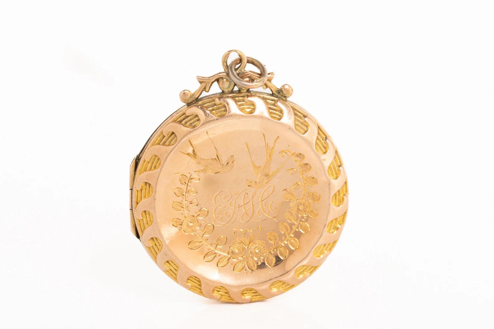 Victorian 9ct Gold Front & Back Bird Floral Locket