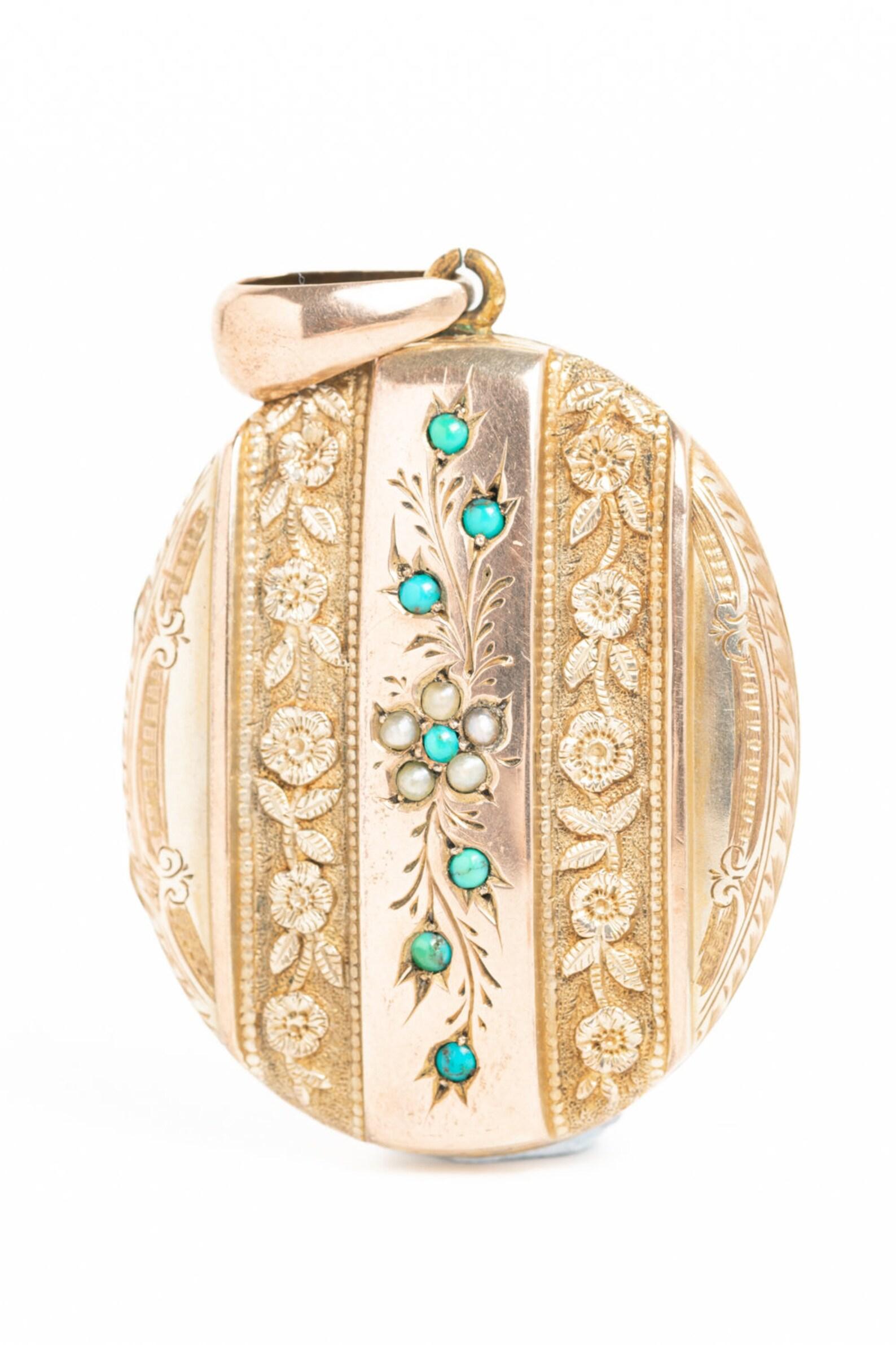 Victorian 9ct Gold & Silver Gilt Turquoise Locket